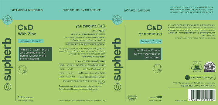 ויטמין C&D בתוספת אבץ | פורמולה משופרת | 100 כמוסות | סופהרב |