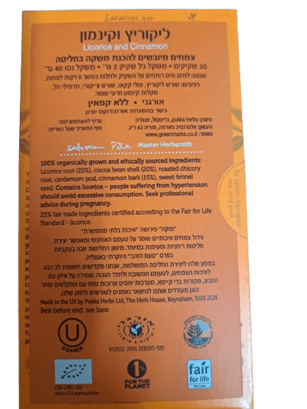 يحتوي على جذر عرق السوس وحبوب الكاكاو وجذر الهندباء وبذور الهيل وأعواد القرفة وبذور الشمر