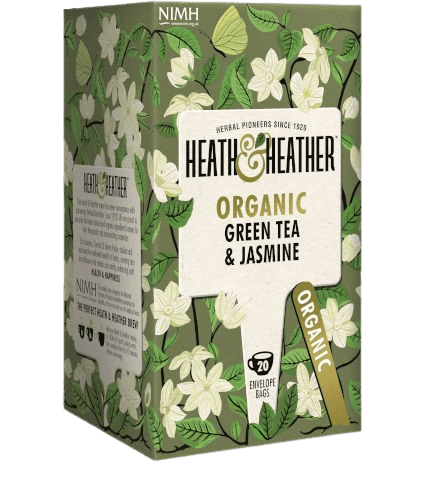 חליטת תה ירוק אורגני עם ניחוח יסמין מבית Heath & Heather — שילוב מושלם של עלי תה ירוק איכותיים ופרחי יסמין ריחניים היוצרים חליטה עדינה, ארומטית ומרגיעה.