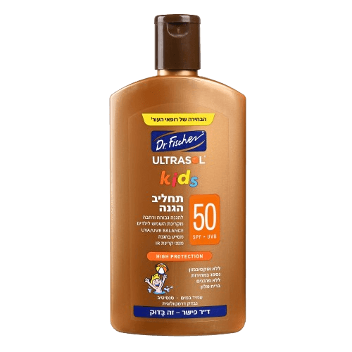 תחליב הגנה ילדים SPF 50 - הגנה גבוהה מפני UVA/UVB, עמיד במים, ד"ר פישר