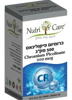 כרומיום פיקולינאט 500 מק"ג | Chromium Picolinate 500 mcg | מכיל 60 כמוסות | משקל נקי 31.8 גרם | נוטרי קר