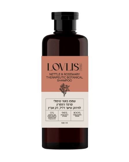 שמפו בוטני טיפולי | סרפד רוזמרין | לחיזוק שיער דליל, דק ועדין | 500 מ"ל | לאבליס | LOVLIS | Nettle & Rosmary Therapeutic Botanical Shampo