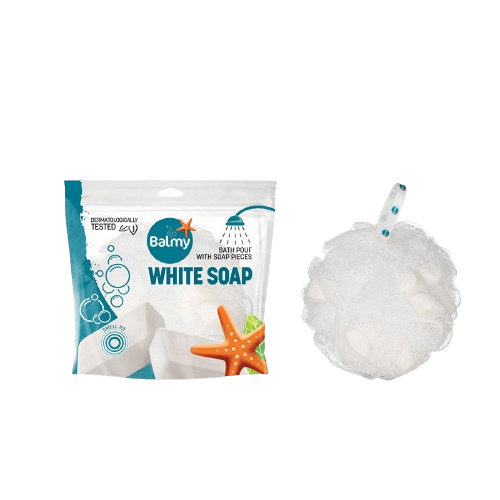ספוג רחצה עם סבון סבון לבן Balmy — White Soap (Bath Pouf with Soap Pieces)