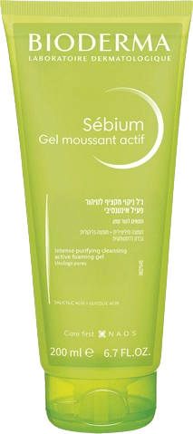 ג'ל ניקוי מקציף לטיהור פעיל אינטנסיבי | מתאים לעור שמן | מכיל 200 מ"ל | ביודרמה | BIODERMA | Sebium | Gel moussant actif |