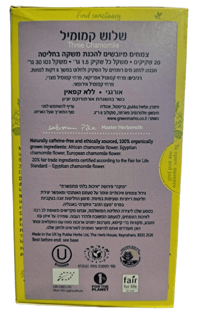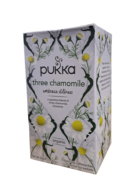 חליטת תה | שלוש קמומיל | THREE CHAMOMILE | מכיל 20 שקיקים | PUKKA