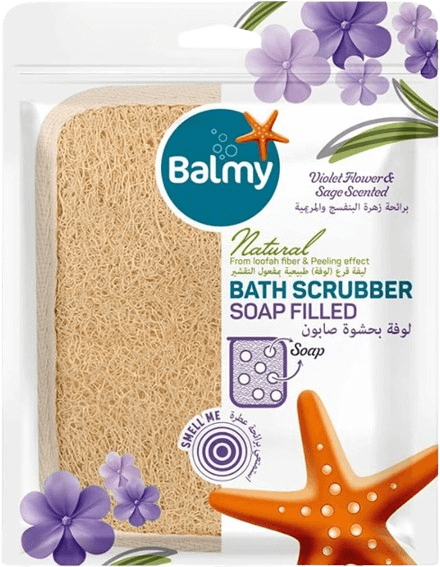 ליפה לרחצה | סקראבר רחצה | ממולא בסבון | נגד תאי עור מתים | בעל ניחוח פרחי סיגלית ומרווה | Balmy | Violet Flower & Sage Scented |
